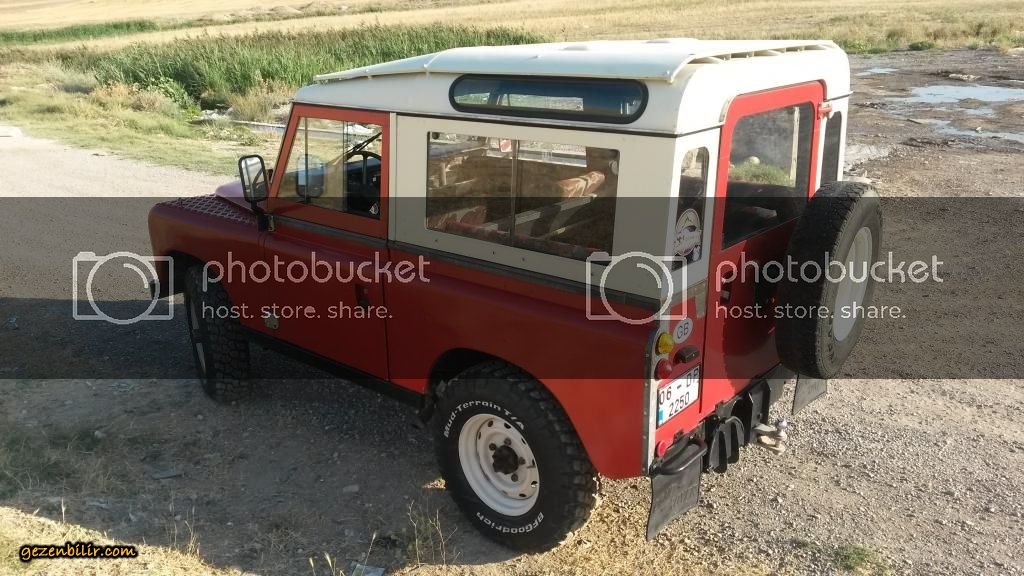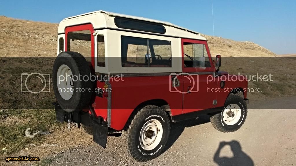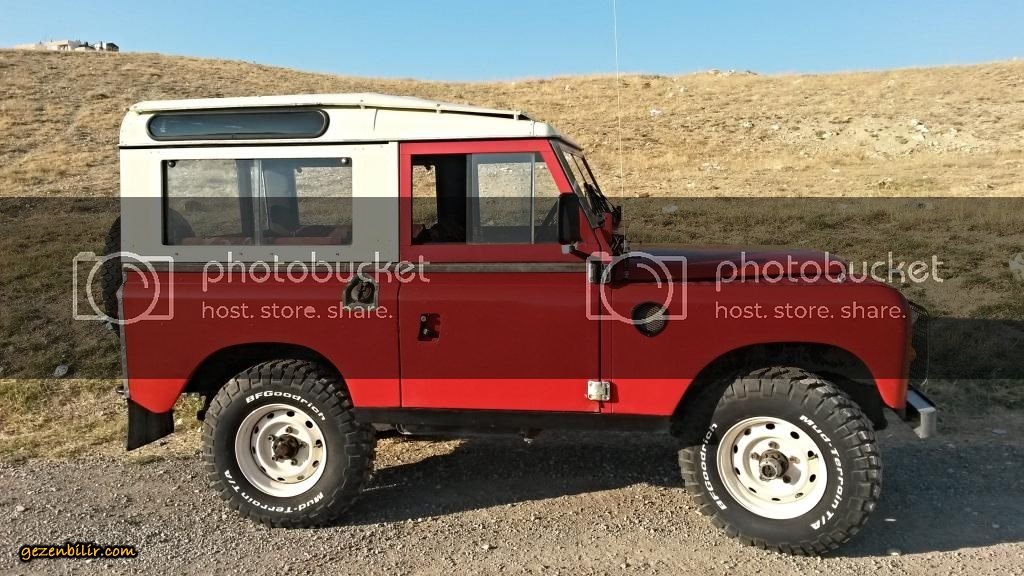 Arabam 82 model, 88 inç kısa şase safari tavanlı Land Rover Series III. 2.25 lt 4 silindir benzinli/LPG'li. BRC Blos LPG mikser uygulaması var, LPG deposu arkada altta. Aracın bagajında herhangi bir kayıp yok. 4 silindir + şanzıman PTO çıkışında Fairey Overdrive mevcut, son hızdaki motor devrini yüzde 30 civarında düşürüyor. Araçta kaput altı, kapı ve bagaj içi ve taban izolasyonu var ancak sonuçta bu bir Series, gürültü onun göbek adı ;D ;D ;D Aracın makasları yapıldı, poliüretan burçlar takıldı, ön takım yapıldı, frenler yapıldı, amortisörler ve rot amortisörü yenilendi, şanzıman ve arazi elden geçti vs vs. Şimdilik motor içine birşey yapmadım sadece... Ateşleme elektronik distribütör ve buna uygun 3 tırnaklı buji, kablolar ve yüksek voltaj bobin ile tamamen yenilendi. Jantlar 16x6.5 inç Defender Wolf jantları, lastikler BF Goodrich Km2 MT. Göğüse montaj President CB telsiz ve çamurluk anteni mevcut. Radyo CD vs yok ;D Ön koltuklar arasında Britpart bardaklıklı konsol var, ön ve arka katlanır koltuklar kamuflaj sökülebilir kılıfla kaplı. Araç içinde Hi-Lift marka hijack kriko var.