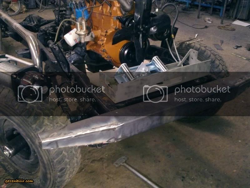 bugün ön tampon yapıldı. Lastikler janta takıldı. vinç tablası ayarlandı. kaya kaydıranlar ölçülendirildi. Bütün menteşe ve metal parçalar kumlandı. Elektrostatik boyaya gitti.