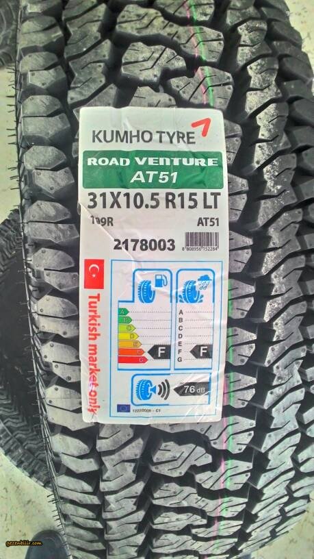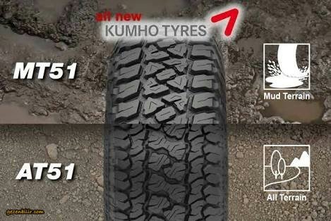 AT51 yakışıklıymış. ben kumho nun kış lasitğini kullanıyorum KJ de. çok başarılı ancak yumuşak yapılı. eskiden pathfinder de kumho venture nin bir modelini kulanmıştım. ne yazıkki AT lasitkleri ilk sene çok iyi oluyor ancak kış görünce sertleşiyorlar ve buz üzerinde kayıyorlar berbat şekilde. Kışın buzda da çekiş sağlasın istiyorsanız ben ZJ grand cherokee de 3 sene kadar sürekli Yokohama Geolander AT kullandım. Kış lastiği olmamasına rağmen buzda da çok iyiydi. Sebebi de aynı kış lastiklerinde olanlar gibi incecik yarıkları vardı dış dişlerin arasında.
