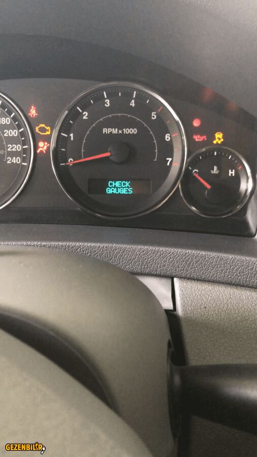 check gauges dediği şey, gösterge panelinde birşeyin yanlış olması durumu. göstergeye bak diyor. gösteregye bakmayan amerikalıları uyarmak içn yapılmıştır. yani aslında hararet göstegesi bozuk ise ona dikkat çekmek için o arıza yazısı çıkar. belkide anahtar bozuk değildir yani.