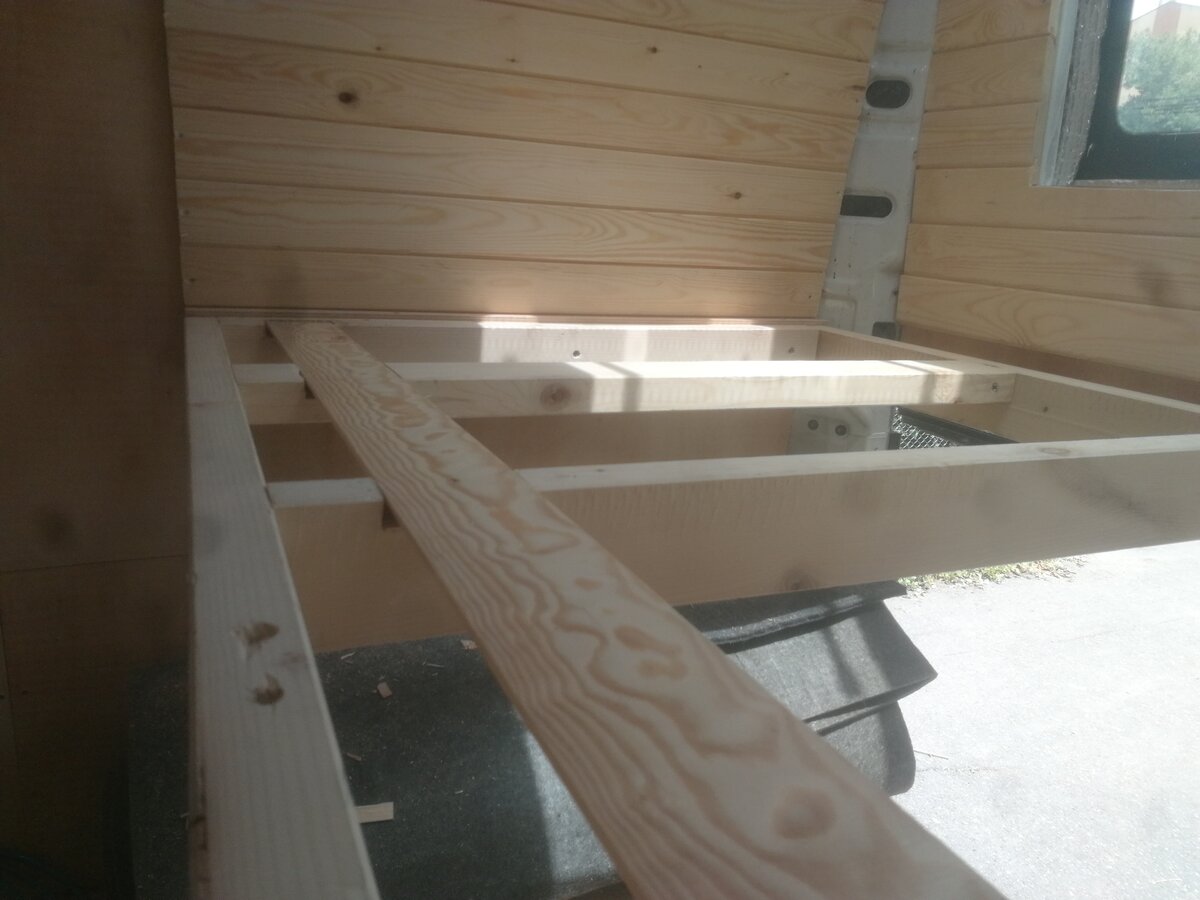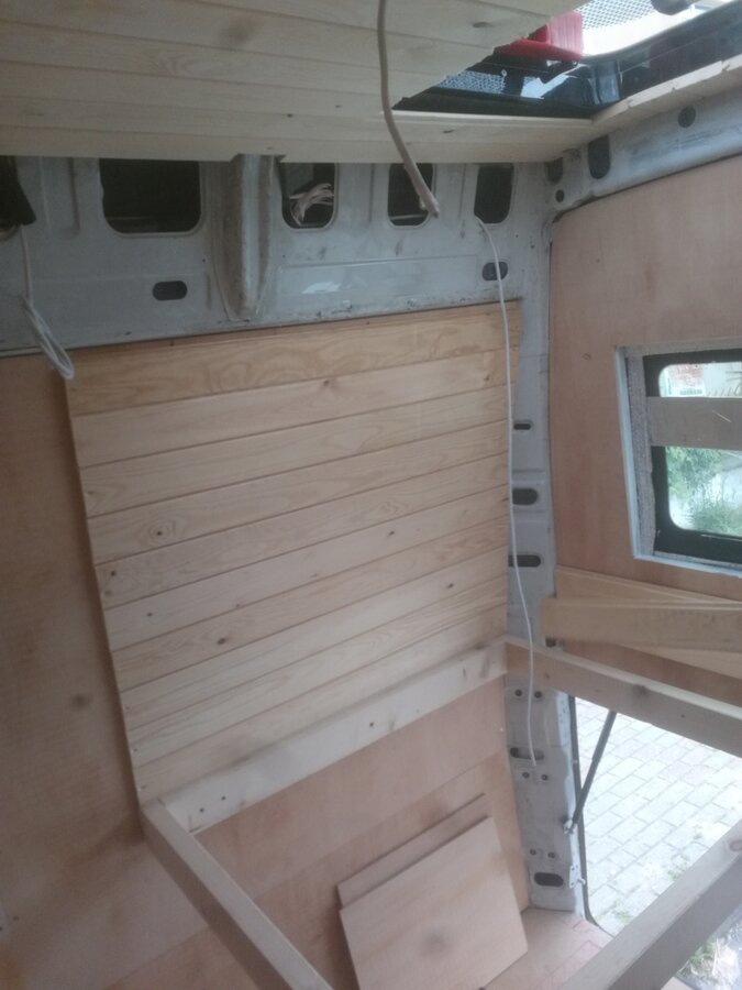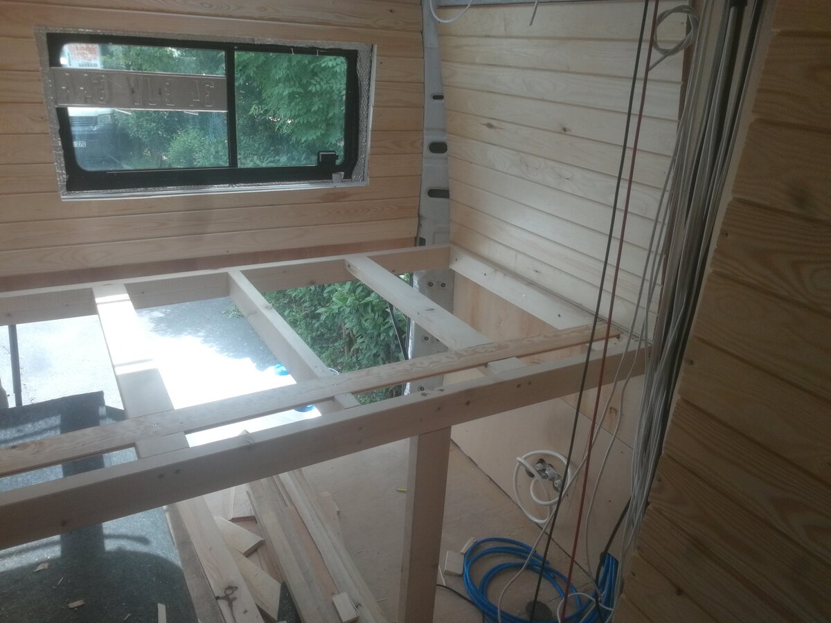 Mobilya ve ahşap işlemlerine devam edildi. Yatak bölümü üst rafları takıldı.