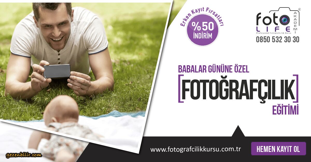 Foto Life Akademi Babalar Günü Kampanyası ile Temel ve İleri Eğitimler ile Mesleki Atölyelerde dilediğiniz kursu %10 indirimle alabilir, sevdiklerinize sürpriz yapabilirsiniz.