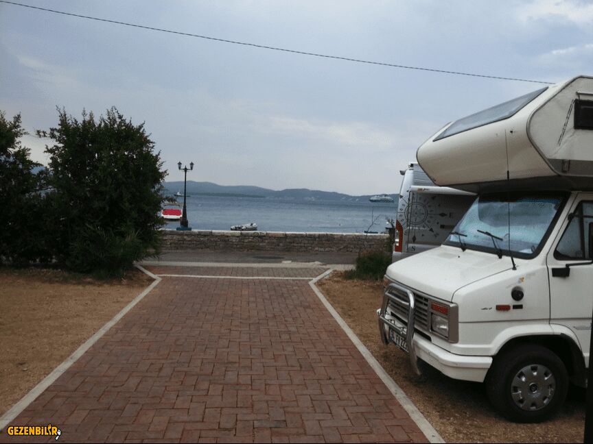 Budva çıkışında konakladığımız park alanı