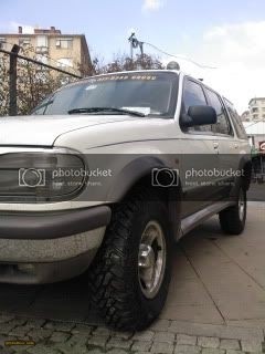Explorer torsiondan ve makaslara kavis verilerek 2" yükseltilmiş 235x85x16 yaklaşık 32" cooper stt lastikler takılmıştır