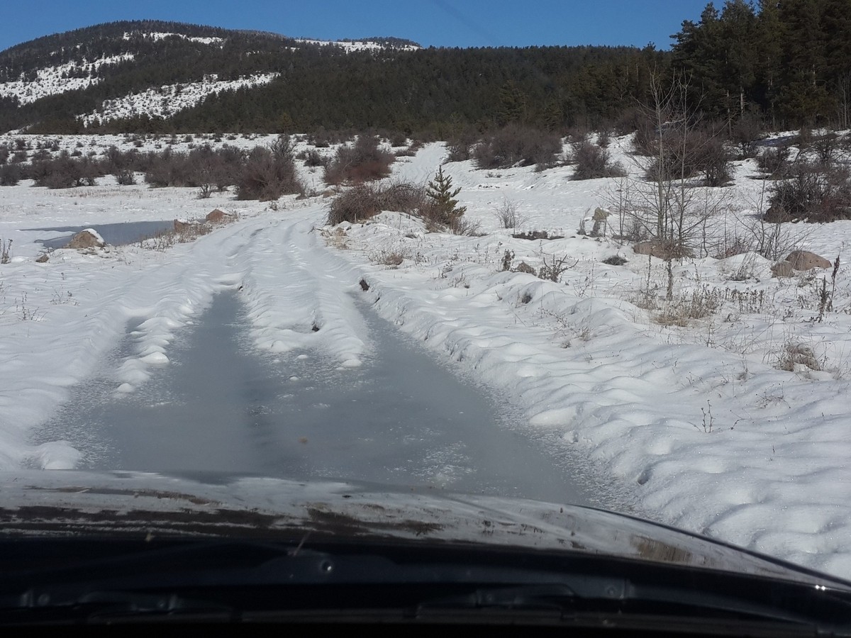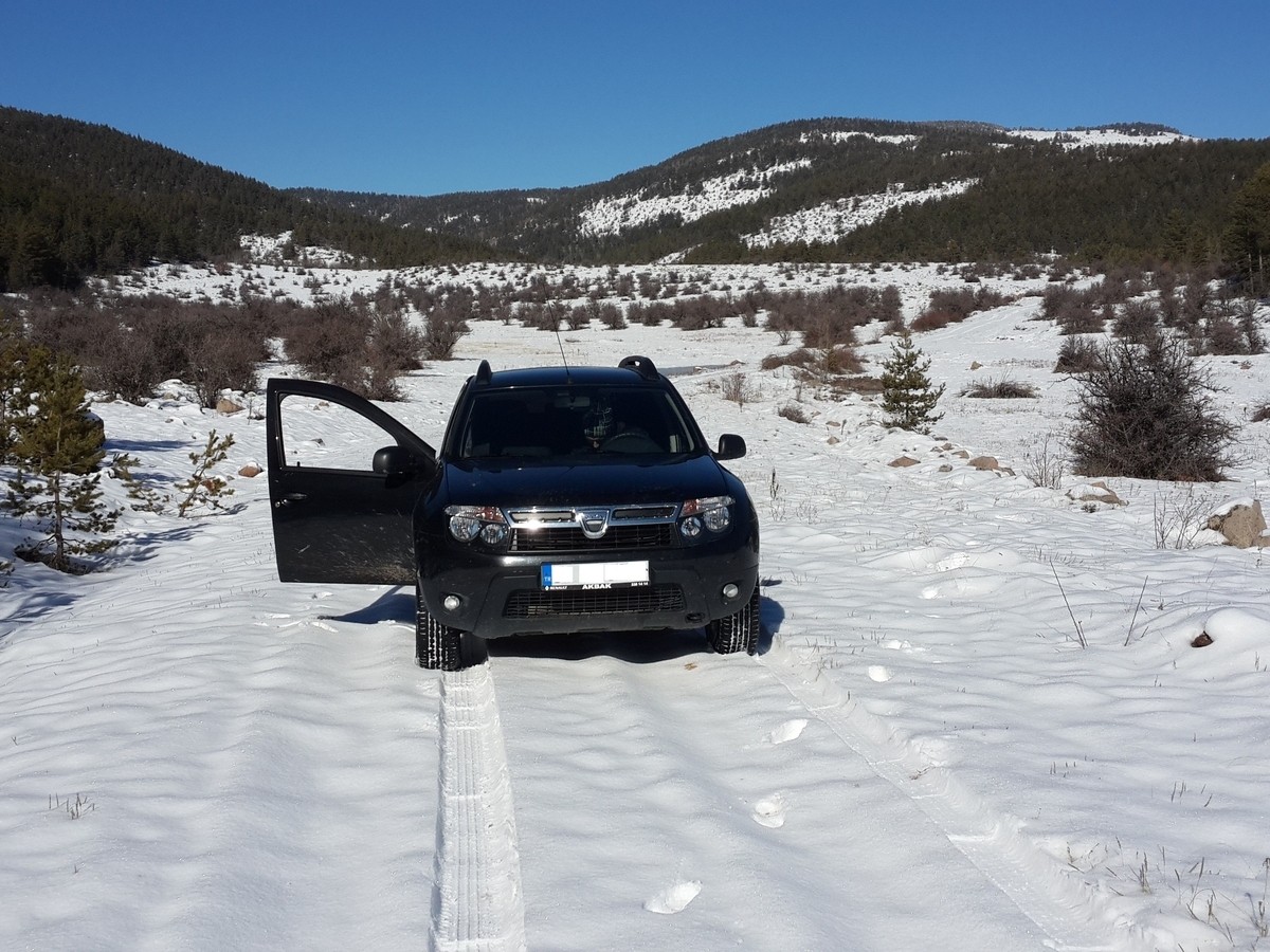 Lastiklerin durumu pek iyi değildi, kar da derinleşince saplandık.