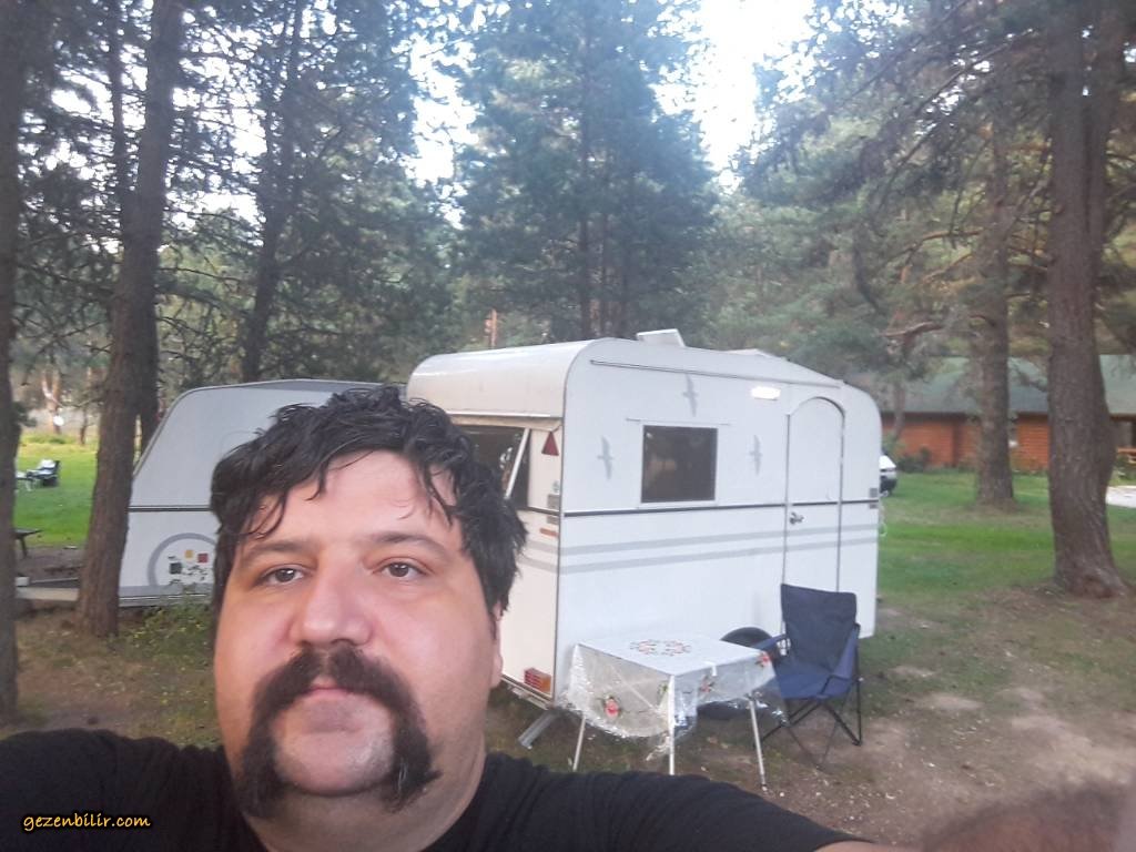 Karavanımda keyif kahvemi içiyorum.