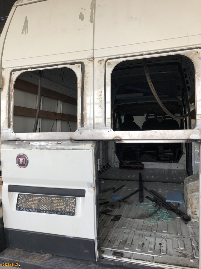 mentşenin uydurulmuş ve cam çerçevelerinin alıştırılmış haliyle şimdilik arka kapıların güncel durumu