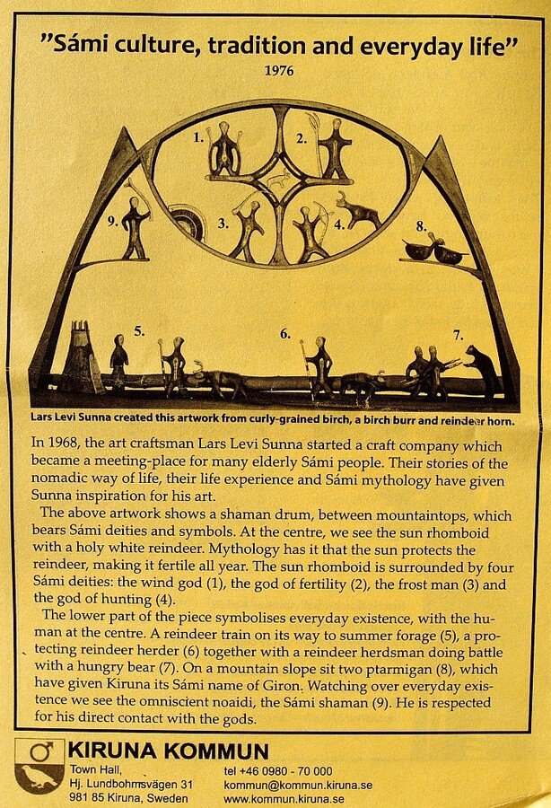 Kiruna'da "City Hall" sergide çektiğim fotoğraftaki heykel Sami mitolojik sembolü imiş.