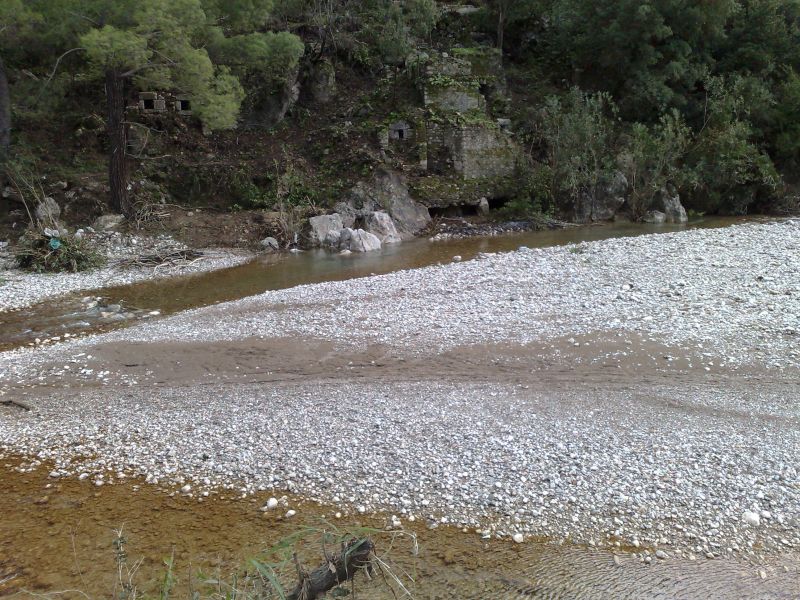 Bu derenin karşısı Çıralı'ya ait ve ağaçların içi pansiyonlar ile dolu.