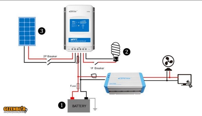 Aynı zamanda devre kesici güneş paneli bağlantısında öneriliyor. akü bağlantısında sadece sigorta tavsiye edilmiş.