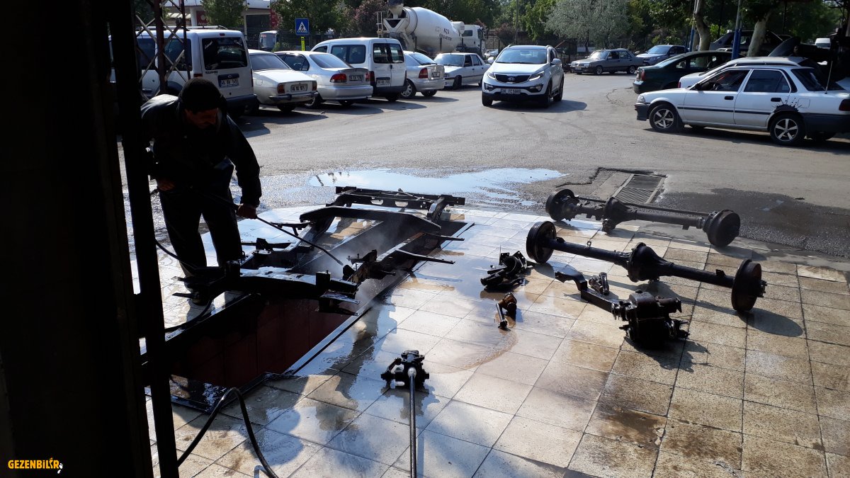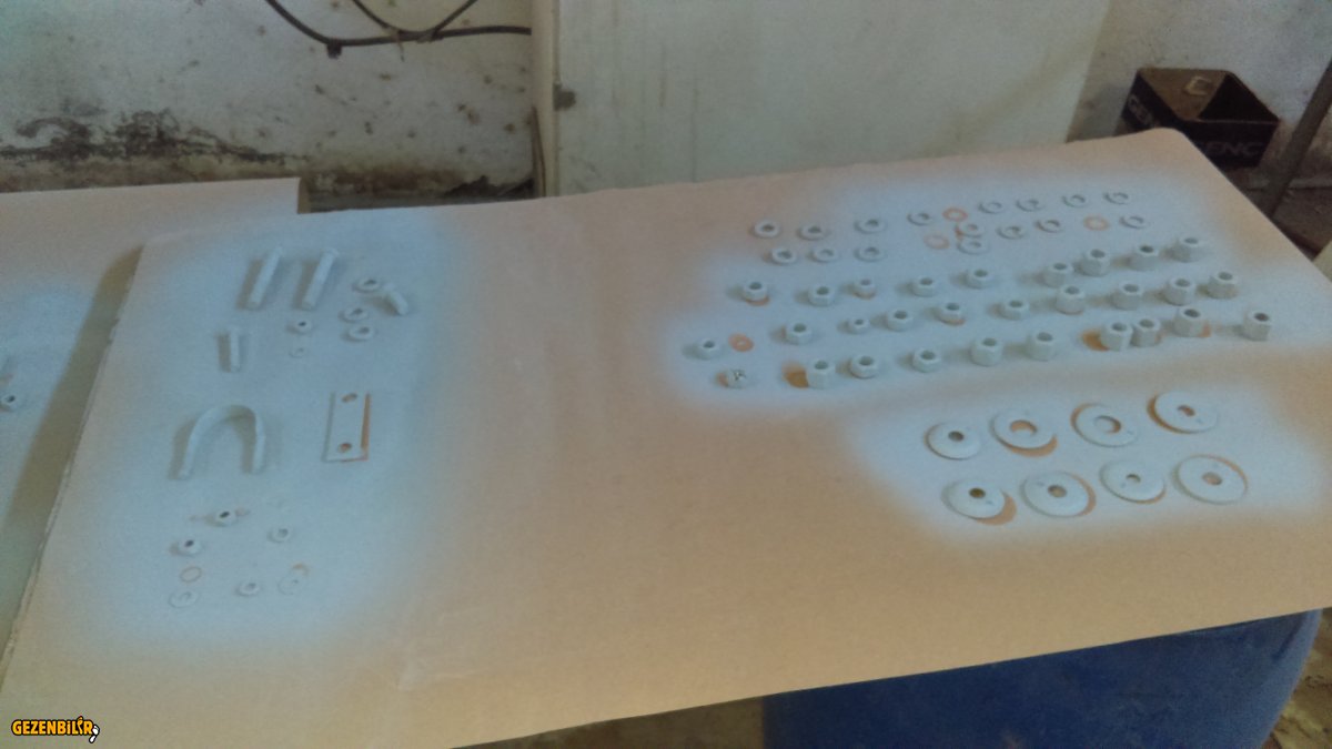 Kumlamacı ile konuştum parçaları kumlatmak için nasıl yapacağımız hakkında bilgi aldık. O şasinin parçalanmamış halde komple durduğunu zannediyordu ben tüm parçaları dağıttım deyince küçük parçaları yapamayacağını söyledi. Kompresörden gelen hava basıncı çok yüksek olduğu için gelen havanın etkisiyle tabancanın önünde küçük parçaların sabit durmayıp uçacağını söyledi.