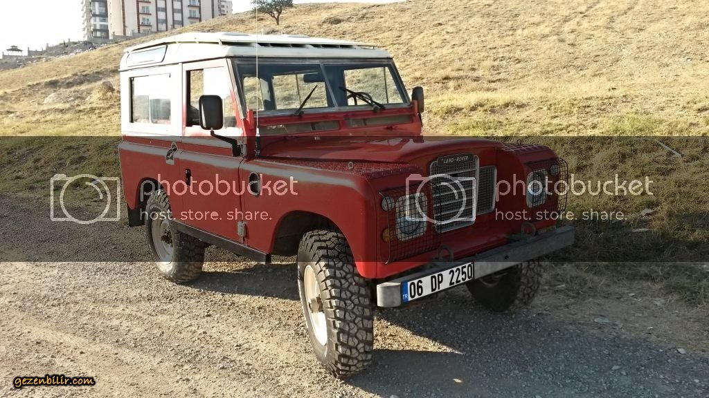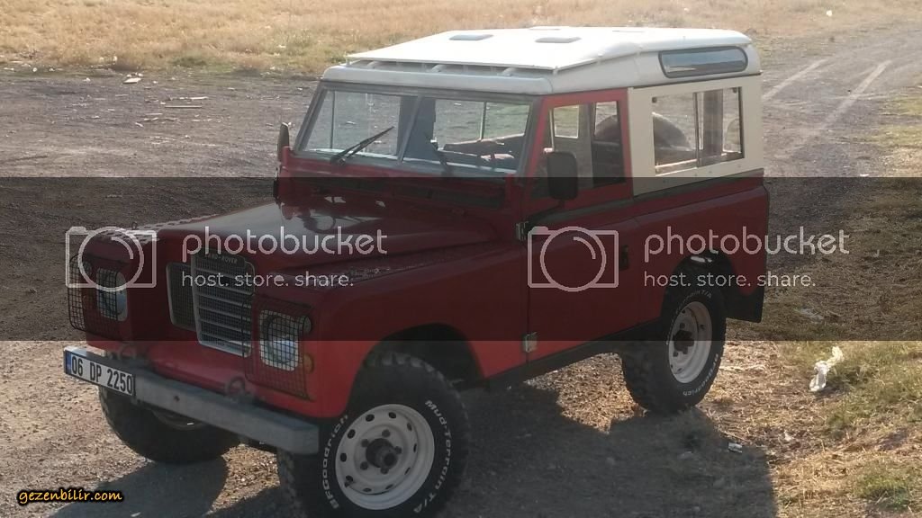 Arabam 82 model, 88 inç kısa şase safari tavanlı Land Rover Series III. 2.25 lt 4 silindir benzinli/LPG'li. BRC Blos LPG mikser uygulaması var, LPG deposu arkada altta. Aracın bagajında herhangi bir kayıp yok. 4 silindir + şanzıman PTO çıkışında Fairey Overdrive mevcut, son hızdaki motor devrini yüzde 30 civarında düşürüyor. Araçta kaput altı, kapı ve bagaj içi ve taban izolasyonu var ancak sonuçta bu bir Series, gürültü onun göbek adı ;D ;D ;D Aracın makasları yapıldı, poliüretan burçlar takıldı, ön takım yapıldı, frenler yapıldı, amortisörler ve rot amortisörü yenilendi, şanzıman ve arazi elden geçti vs vs. Şimdilik motor içine birşey yapmadım sadece... Ateşleme elektronik distribütör ve buna uygun 3 tırnaklı buji, kablolar ve yüksek voltaj bobin ile tamamen yenilendi. Jantlar 16x6.5 inç Defender Wolf jantları, lastikler BF Goodrich Km2 MT. Göğüse montaj President CB telsiz ve çamurluk anteni mevcut. Radyo CD vs yok ;D Ön koltuklar arasında Britpart bardaklıklı konsol var, ön ve arka katlanır koltuklar kamuflaj sökülebilir kılıfla kaplı. Araç içinde Hi-Lift marka hijack kriko var.