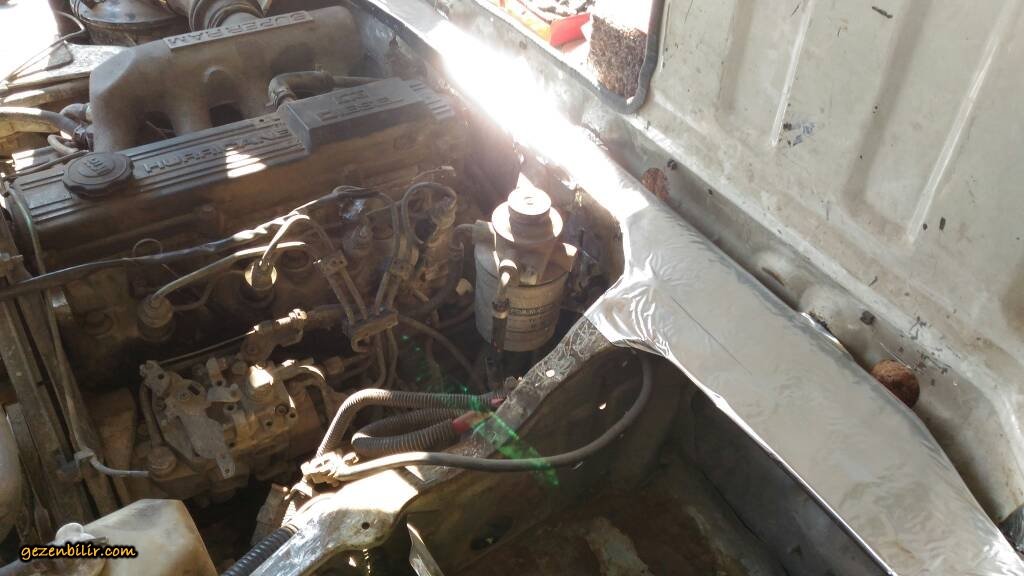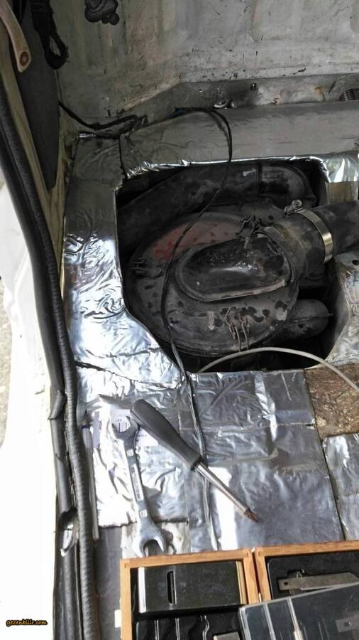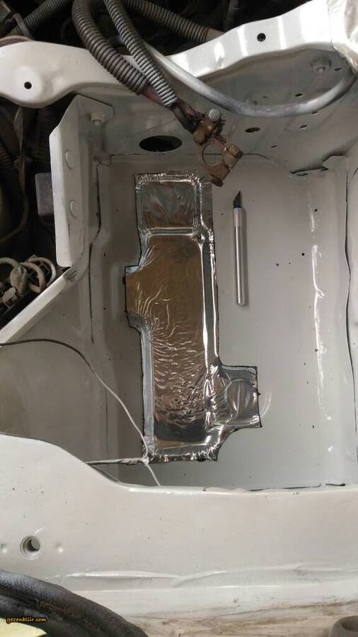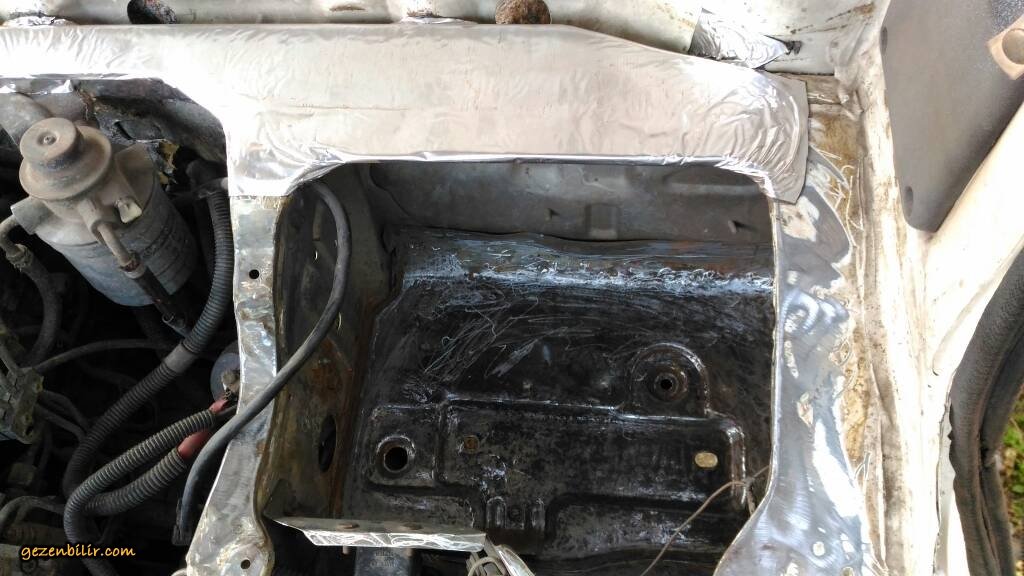Merhabalar haftasonlari firsat buldukca işe kaldigim yerden devam ediyorum , aku bolmesini gecen hafta boyamistim 1 hafta boyunca boya kuru izalasyonuna basladim , fabrikasyon delikleri siko marka ziftli bitumle, ustunu aku koseli ve sert oldugu icin sert bitum malzemesi ile izole ettim , sol taraftaki manifolt hava girisini fonksiyosuz oldugu icin komple kapattim, (hi bestalarda manifolt surucu tarafina bakiyor ) aku tutucutu demiri de yerine tekrar vidaladim b7ba9e190b2d8151d6bc1798d6aa7496.jpg 56effdc7167035392146f4904b0815b8.jpg 49f52c297e1a87a59227fe66495ab241.jpg 12cf11dda11e97a6d8975740ff05a2c4.jpg