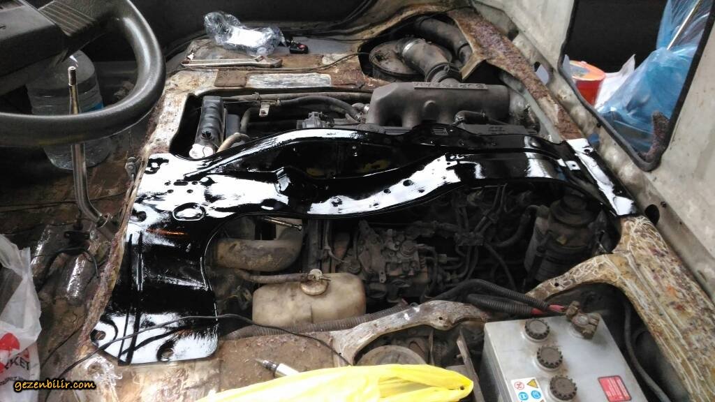 Verdim astarı , sıktım orjinal boyayı , biraktim kurumaya , iceriyi tabana yesil olan izalasyonu kullanicam , delikleri kapaticam lifte alip alttan da sipiral yapicam ve alttanda izole edeceğim , bundan sonra yol kaportaciya taban saçını yapicaklar sonra ben kaldigim yerden devam edicegim..