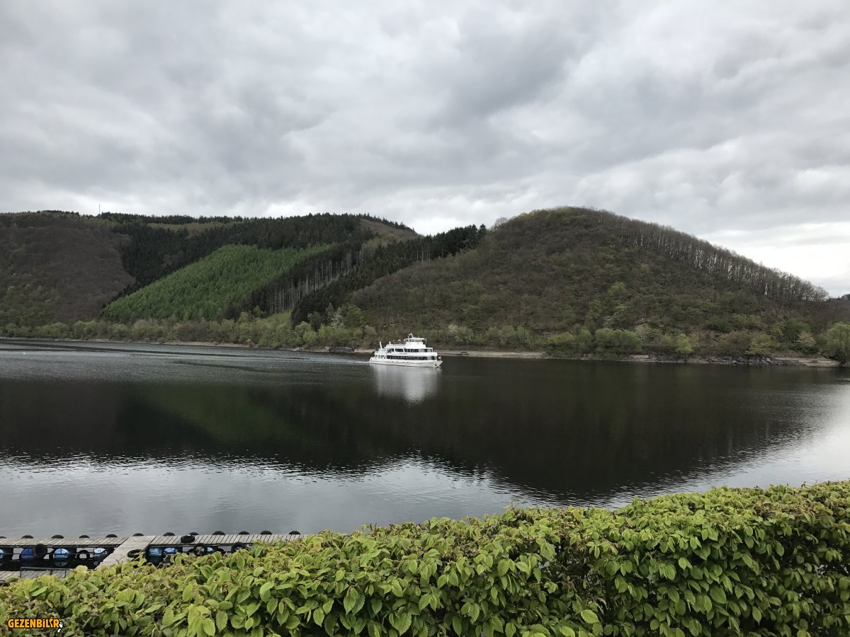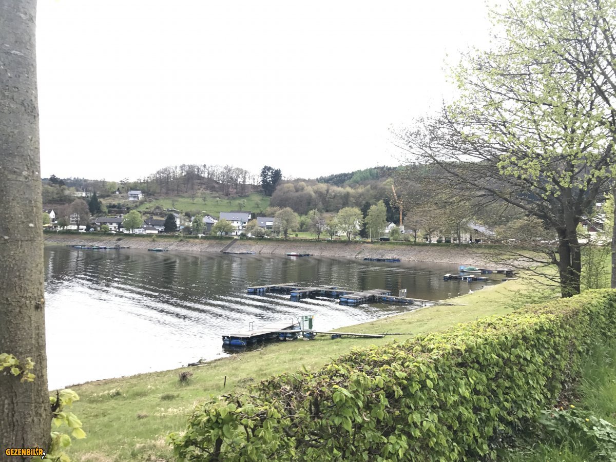 Monschau dan ayrılınca ertesi gün olan uçağıma zaman olduğu için nereye gideceğime hem harita da Hem de stellplatz daki levhadaki haritaya baktım baraj gölü gibi olan yerin güzel olabileceğini düşünüp oraya çevirdim rotamı.Zaten çok yakın bu bölge milli park.