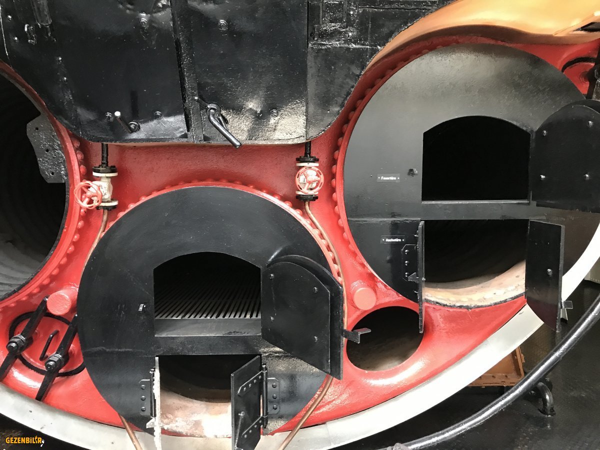 Makine dairesi çok büyük Ve ısınan suyun buhar gücü ile çalıştığını düşününce burada gemiciler kaç derecede çalışıyorlar acaba?Bunu buharlı lokomotifleri gezerken de düşünmüştüm.