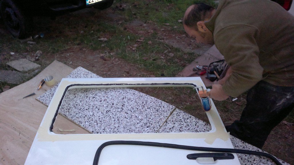 Sıra diğer tarafın camına geldiğinde başımıza dökülen kaynar su çarpı iki oldu, çünkü karavan camı bu sefer de küçük geldi. Haydi diğer tarafta camı ufalttık ama burada camı büyütme şansımız yoktu. İşte şimdi hapı yuttuk diye düşünürken aklıma çok iyi bir fikir geldi. Çıkan orjinal camın alüminyum çerçevesini kestim ve orjinal lastiği ile cam boşluğuna yerleştirip karavan camını öyle monte etmeyi denedim, sanki onun için yapılmış gibi cuk diye oldu ve büyük bir problem atlatılmış oldu.