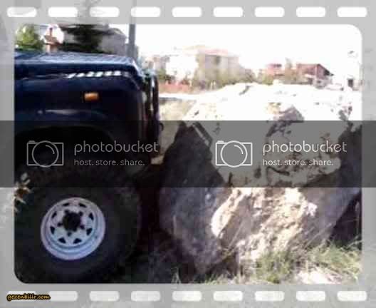 Bu taşa yaklaşmak için kıyısından köşesinden dolanıp duruyordu, en son tamponu ele alarak tek tekeri azıcık çıkarmıştı üzerine ;D ;D ;D ;D