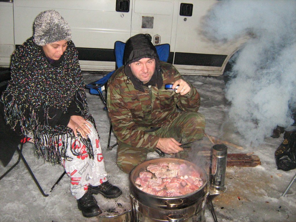 Bu kadar yorgunluğun arkasından araçların yanında kamp ateşi etrafında