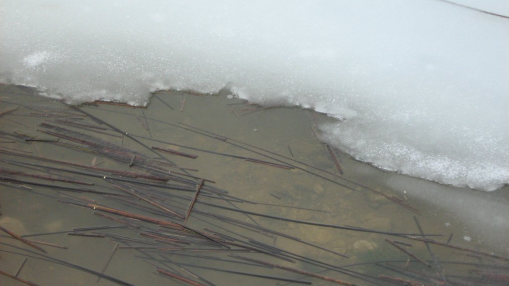 Göl üzeri azda olsa kenarlarda buz var.