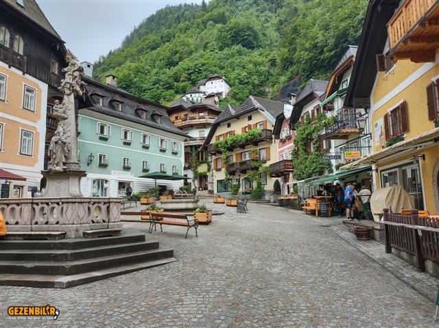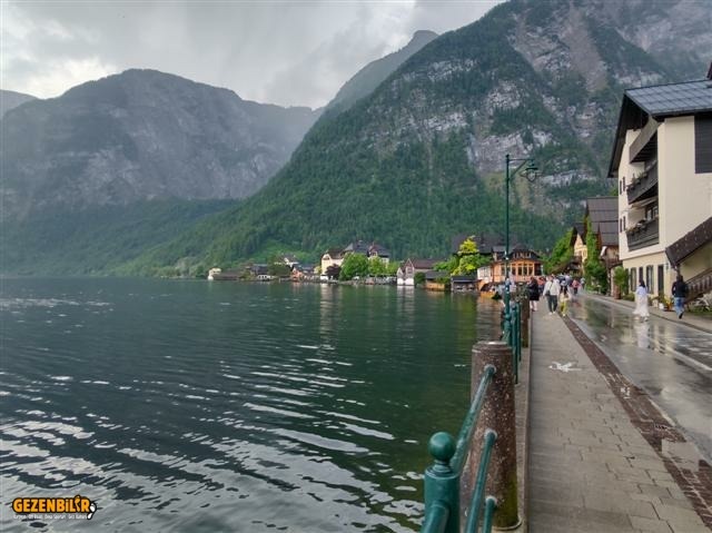 Nefis manzaraları izleyerek, yeşilin ve mavinin her tonunu içselleştirerek, ara sıra yağan yağmurun da sesini dinleyerek Hallstatt’a geldik. Parkplatz 2’ye aracı bırakıp göl kenarına inerken başlayan yağmurun dinmesini neredeyse bir saat, sığındığımız saçak altında bekledik. Bence bu gezinin en görülecek yerlerinin başında gelen bu güzeller güzeli köyde yağmura yakalanmamız yediğimiz cezadan sonra, bugünkü ikinci talihsizliğimizdi.