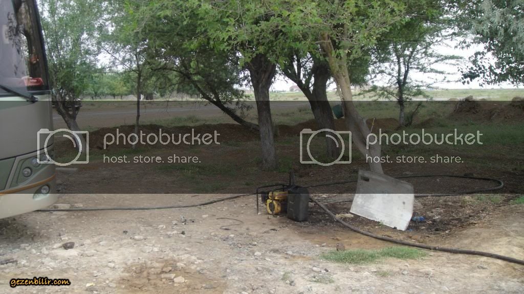 Saat 09.15 gibi yarı yarıya dolu olan otobüsümüz hareket etti.Bakü-Tebriz arası yaklaşık 590 km ve bunun 190 kmsi Azerbaycan ve 400 kmsi de İran topraklarında.Başlangıçta Astana-Salyan tabelalarını izleyerek gayet güzel otoban gibi bir yolla başlayan seyahatimiz ilerledikçe yollar bakımsız hale gelmeye başladı.Yaklaşık iki saat sonra ilk mola yerine geldik.Ancak burası hijyen açısından bizim yollardaki konaklama tesisleriyle kıyaslanamayacak kadar kötü bir yerdi.Biz de karnımızı taze pide ve çayla doyurmayı yeğledik.Tekrar yola koyulduktan kısa bir süre sonra otobüs tuhaf bir yola girdi ve bir kulübenin önünde durdu.Kulübeden çıkan adamlar süratle bir jeneratörü devreye sokmaya çalıştılar.Aşağıya inince durum anlaşıldı;otobüs İran’dan deposuna yüklediği ucuz akaryakıtı burada boşaltıp hafifliyordu.