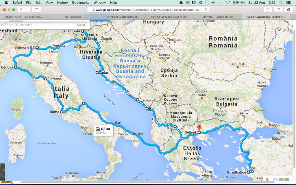 Rotamızın kaba bir haritası
