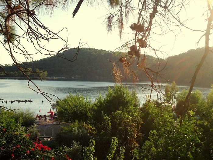 1980 li yıllarda, kıyısında konaklayıp, denize girdiğimiz Ölüdeniz'i şimdi ancak uzaktan, ağaçlar arasından fotoğraflayabildik. Tüm çevresi turistik tesislerle kapatılmış...