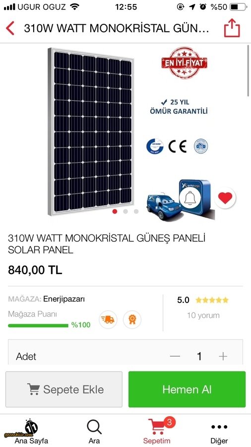 2-3 adet 310W güneş paneli düşünüyoruz (aracın üstüne sığmasına da bağlı olarak)