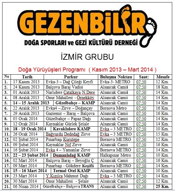 Ek dosya İzmir programlarımız;