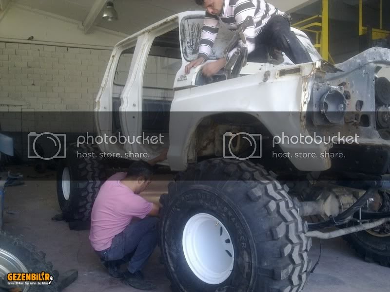 jantlar unimog kafalara göre tadilat olup, elektrostatik boyandı. bugün motor ve şanzıman yerleştirilip takoz yerleri yapılacak. Vakit kalırsa kupayı atıp çamurluk traşlamasına başlayacağız..