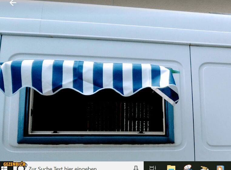 Bu karavanla bir karavanparkta iki gün komşuyduk. Komşumuz bayan güneş karşımızdaki pencereye vurduğunda pencerenin üzerine bu örtüyü koyuyor ve pencerenin önünde oturuyordu. Hep selamlaştığımız halde, lisan yetmediği için bu örtüyü yakından görmek mümkün olmadı. Örtünün yukarı kısmında sağ ve solda iki uzantısı vardı ve bunları pencere kapağının altından bağlıyordu. Pencerenin önünde ve yan tarafında saçaklar vardı ve güzel görünüyordu.