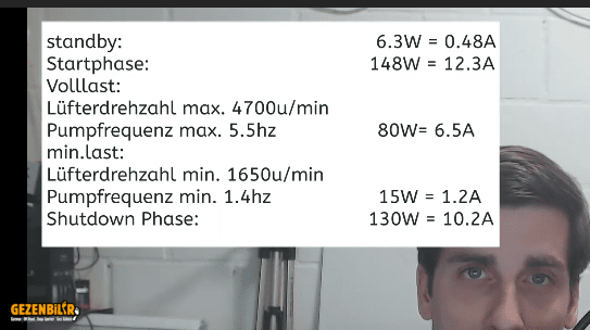 Aṣağıdaki Almanca video ҫin üretimi bir dizel ısıtıcının sarfettiği elektriği gösteriyor.