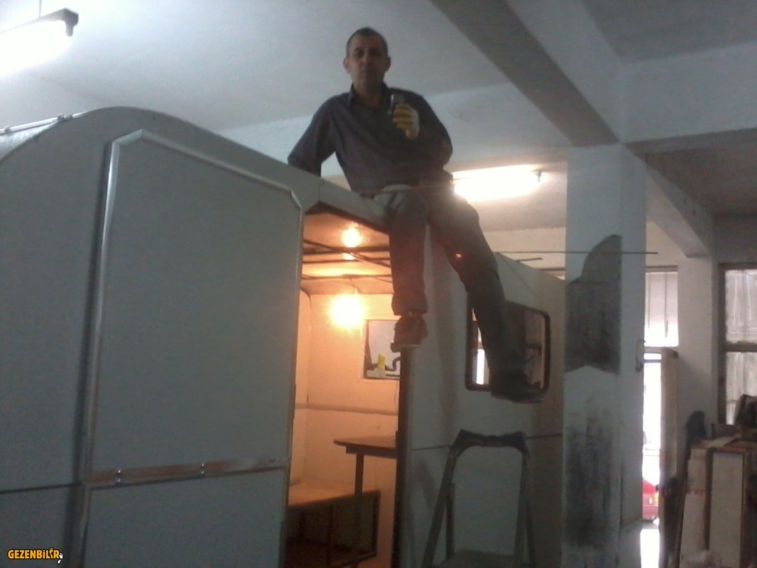 Tabiki ölçüler degiştigi için tavan kaplamazsını yeniden yaptım . daha sonra iki parça yaptıgım kapıyı birleştirip bütün hale getirdim Bugün yerine takıp tavan kaplamasının ek yerlerini çatı kaplar gibi üst üste bindirerek silikonlayıp aliminyum çıtalarını taktım .Ekli dosyayı görüntüle 5473 Ekli dosyayı görüntüle 5474