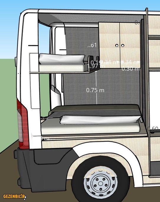 Böyle uzun bir araçta oğlunuzun ileri yaşları için bile önde yemek masasından yapılan yatağın rahatlıkla yetmesi lazım.