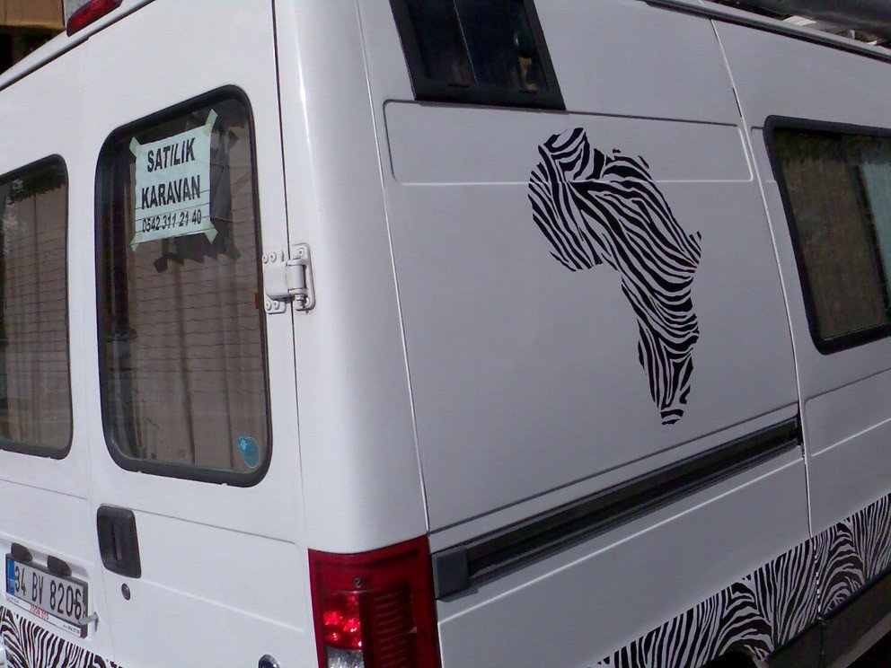 Bu gün karavanın sticker'larını yapıştırdım, karavan artık " African Safari " oldu...
