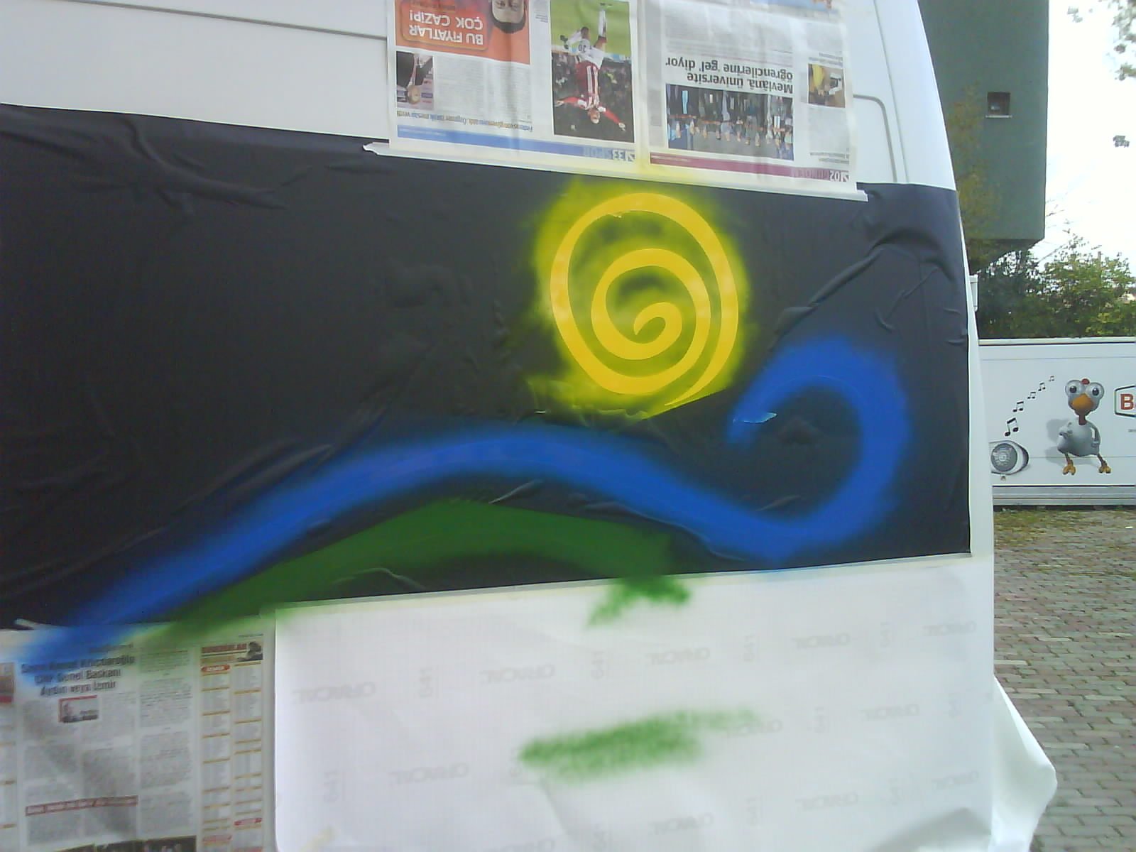 bu haftasonu logomuzdan memnun değildik, istediğimiz şekilde yapılmadığı için çıkartmaları söküp yüzeyi temizledik, dişi kalıp çıkartıp kaportamıza yapıştırdık ve boya ile logomuzun şeklini verdik, renk atma işi bitince üstlerine vernik atarak boyanın ömrünü uzattık, Bülent ağbininde ellerine sağlık sağolsun ne zaman çağırsam hemen gelip yardımlarını esirgemiyor, resimler