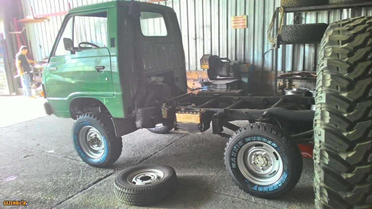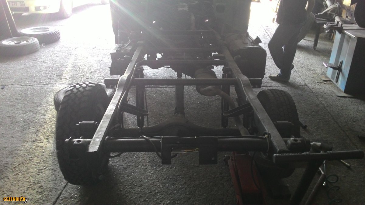 jant olayını çözemediğimiz için o problemi aslında doğru bir strateji olmamasına rağmen en sona bırakmak zorunda kalarak aracı yükseltme işine giriştim, ön arka sabit aks ve makaslı olduğu için yükseltme işi jantların yanında çok kolay oldu.