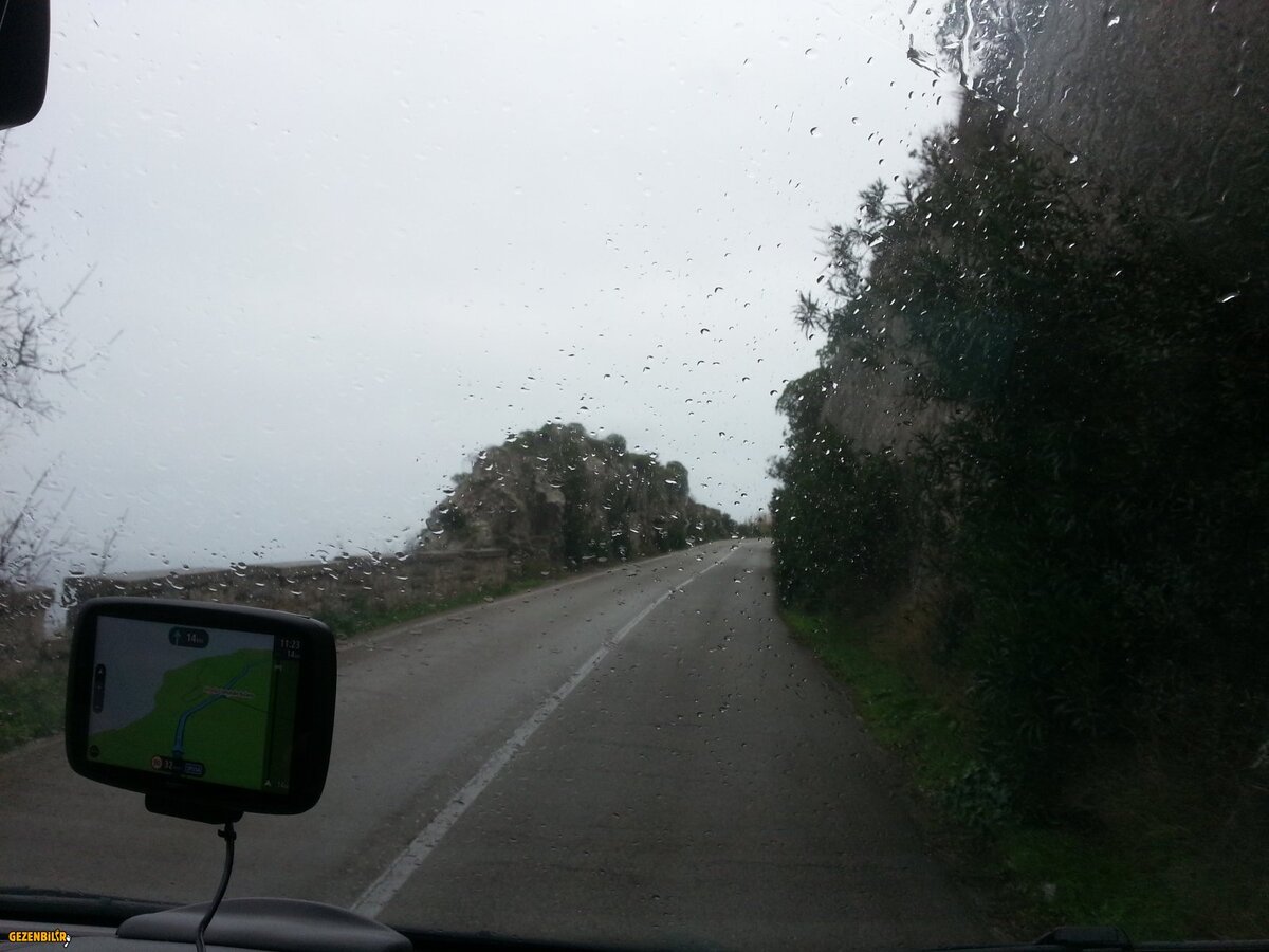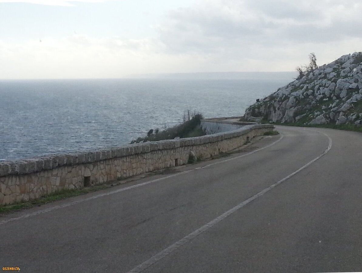 Gelecek durağımız denizi takip eden yoldan güneybatıya doğru 16 km sonra Santa Cesarea Terme. Devamlı virajlar ve inişli çıkışlı bir yoldan ilerliyoruz. Solumuzda hep deniz… hava bugün çok rüzgârlı; deniz köpük köpük. Yol boyunca zaman zaman taş kuleler (torre) görüyoruz. Tiren denizine bakan kıyıda yol alırken de onlarcasını gördük.