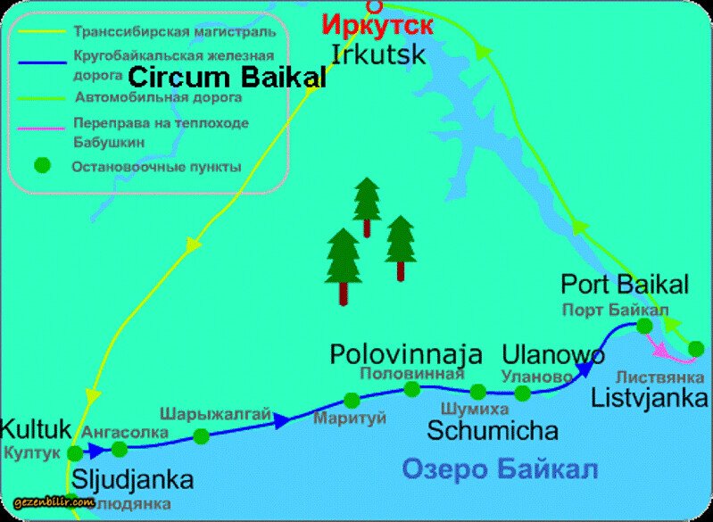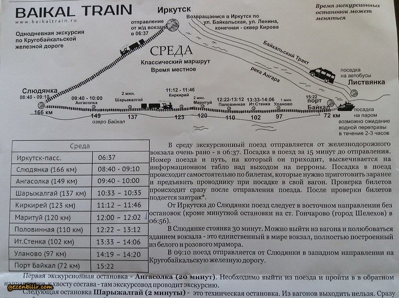 Tren için iki seçenek bulunmaktadır.Birincisi,bizim de tercih ettiğimiz ve İrkutsk-Slyudyanka-Port Baykal arasında çalışan
