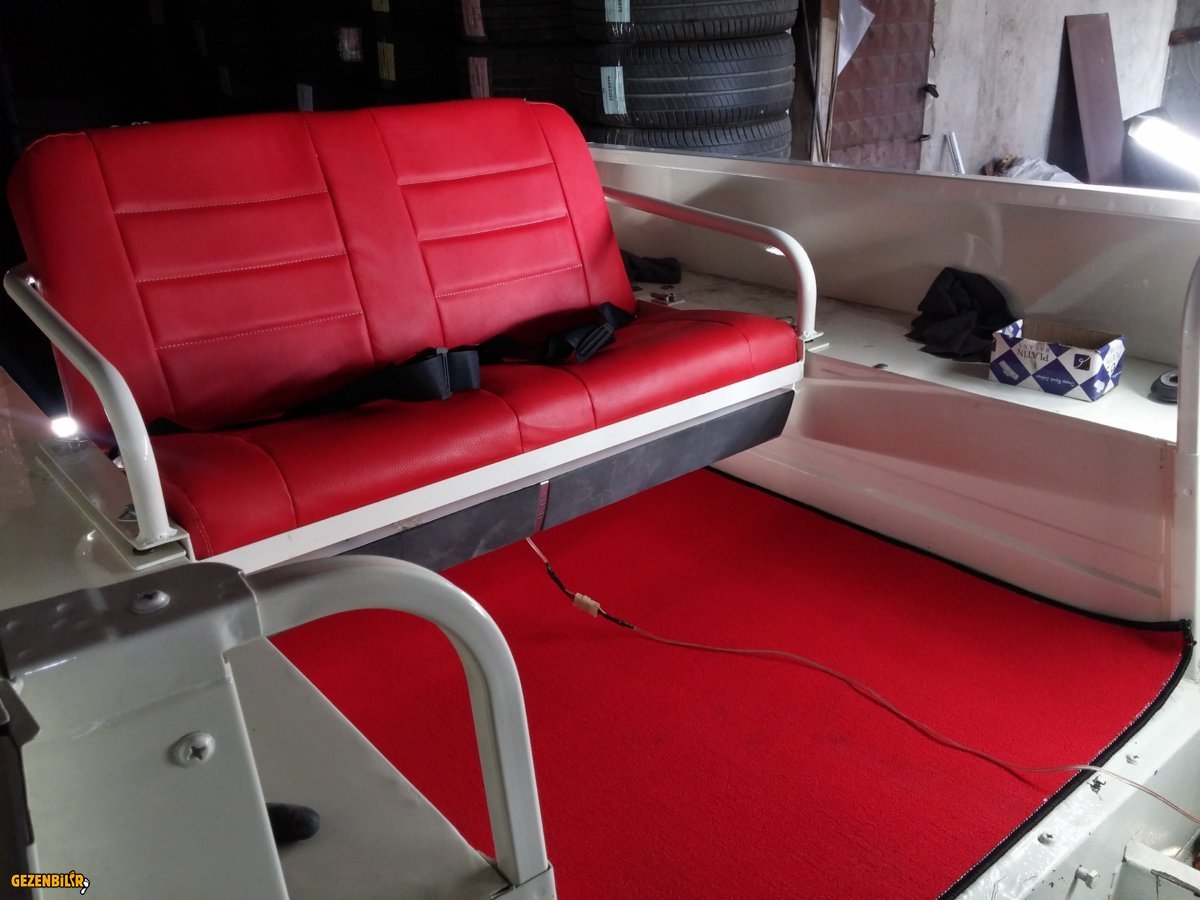 Koltuk halı ve boya uyumu bizim hoşumuza gitti. Burda resimlerde gözükmüyor fakat arka halı kaymasın diye halı ucunu aliminyum köşebentle sabitledik ve araca çok ayrı bir hava kattı.