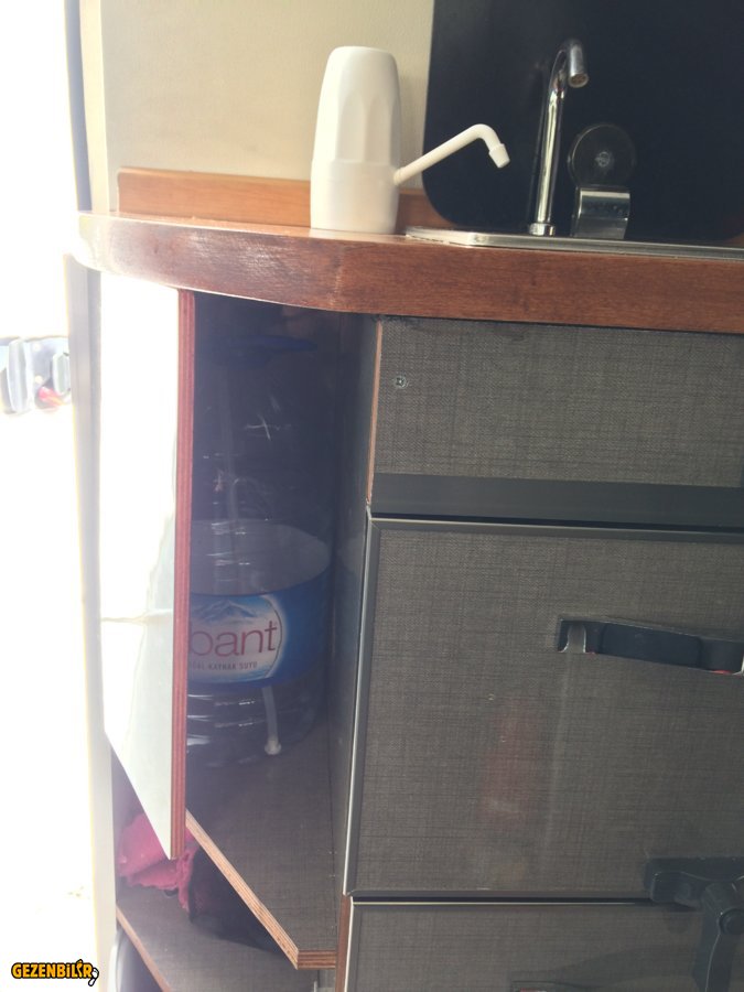 Karavanın içinde biraz değişiklik yaptık. Yapım aşamasında biraz ekonomik düşünüp birazda buzdolabın büyük olmasını istediğimizden küçük dolaplara pek bakmayıp elimde metre ile gezip sınıfının en küçük ölçülerine sahip olan uğur çift kapılı dolap almıştık ama artık karavan içinde duruşu gözümüze batmaya başlayınca biraz değişiklik yapmaya karar verdik ve demir karavandan italyan orijinal karavan dolabı aldık üstüne birde lpg li fırın alıp yerleştirdik. 220 volt prizi söküp oraya 12 volt bir adaptör koyup hem dolaba hem fırına 12 voltu verdim. tabi hem malzeme seçimimi hemde bağlantıları karavanın elektrik sistemimi yapan emekli elektrik mühendisi ile iletişim kurarak yaptım. Fırının Lpg bağlantısını aracın lpg sistemini yaptırdığım ustaya yaptırdım.